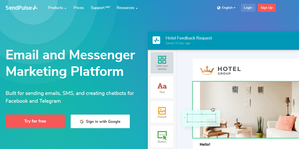 SendPulse advertises itself as a multi-channel marketing platform, but its email marketing feature is the most popular. It comes with many of professionally-designed email templates that you can easily customize using a drag-and-drop editor.
