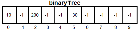 10 - 200 - - 30 - - - -Array Representation of BST with values: 10,200,30