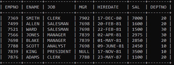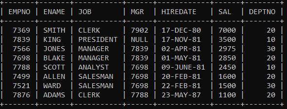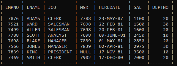 select * from emp;