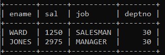 select ename,sal,job,deptno from emp where deptno=30;