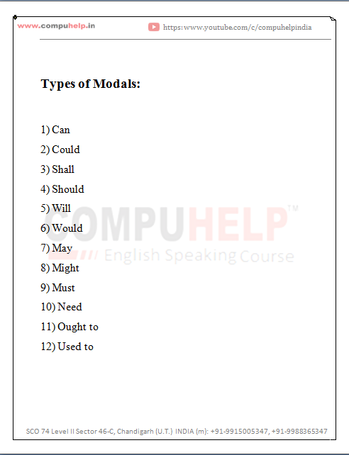 Types of Modals: